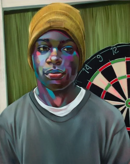 Campbell makes each painting with the same dimensions (30 x 22 1⁄2 in. [76.2 x 56.5 cm]), using paper that she primes with a custom pink acrylic paint. She then employs a limited palette of black, white, and gray to build the portrait. Although she approaches each work with identical parameters, Campbell imbues each portrait with a unique sense of identity, capturing their likeness with bold and gestural brushstrokes. Each sitter meets the gaze of the viewer, with her strengths and vulnerabilities candidly conveyed. Beyond subject matter, these works are a celebration of painting itself, and the quality of imagery that can only be brought forth with paint and brush. As Campbell states, “I believe deeply in process being content.”